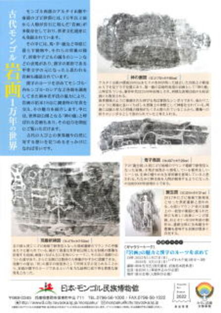 日本・モンゴル民族博物館では、2022年11月13日(日)から2023年4月18日(火)まで、第88回企画展「古代モンゴル『岩画』1万年の世界~漢字のルーツと原初の美を求めて~」を開催しています。