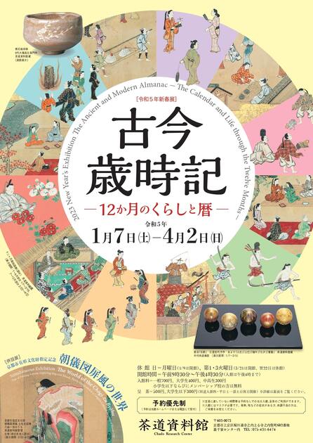 本展では 正月、節分、葵祭、祇園祭など、茶事や茶会でテーマとなりやすい年中行事を取り上げ、関連する茶道具や絵画等を展示します。あわせて旧暦で行われた時期を解説し、行事の成り立ちや季節感の違いなどを紹介します。古今の歳時記のちがいをお楽しみください