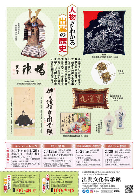 本展では、今日の出雲地方の発展を支えた先人たちの事績を中心に、さまざまな資料を紹介して、
