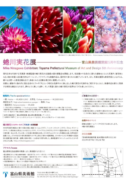 本展覧会は、現代日本を代表する写真家・映画監督の蜷川実花の北陸最大級の展覧会です。