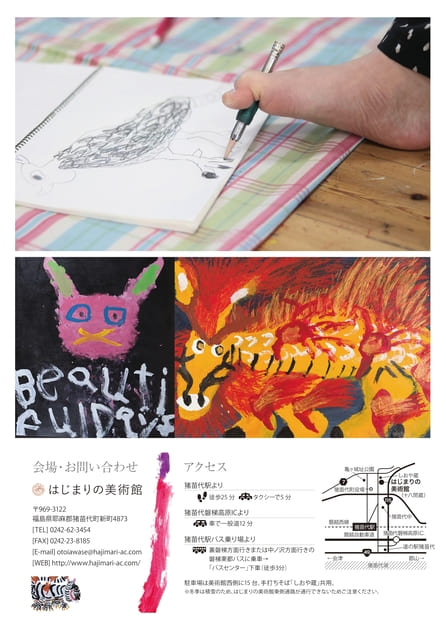 | アクセス | ■電車 JR猪苗代駅より徒歩25分 ■タクシー JR猪苗代駅よりタクシーで5分 ■お車の方 猪苗代磐梯高原ICより一般道で12分 駐車場は美術館西側15台。手打ちそば「しおや蔵」共用 ■バス JR猪苗代駅バス乗り場より、裏磐梯方面行き、または中ノ沢方面行きの磐梯東都バスに乗車→「バスセンター」下車(徒歩3分) ※バスの時刻表は磐梯東都バスホームページよりご確認ください。 |