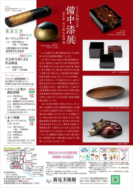| 入場料 | 一般 800円(700円) 大学生 500円(400円) 中高生 300円(250円) 小学生 200円(150円) ※( )内は各種割引料金 ※新見市内の小中学生は「こころふれあいパスポート」提示で観覧無料 ※「高梁川流域パスポート」提示の小学生は土・日・祝休日に限り観覧無料 |