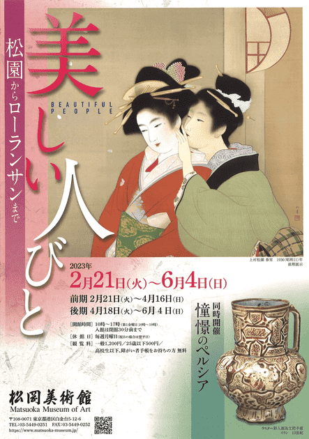 今展では、上村松園、伊藤小坡、鏑木清方、伊東深水ら人気の高い「美人画家」たちの作品とともに、江戸時代から昭和時代の日本の絵画と工芸、そして近代の西洋絵画にあらわされた、年齢や性別にとらわれない美しい人びとをご紹介いたします。