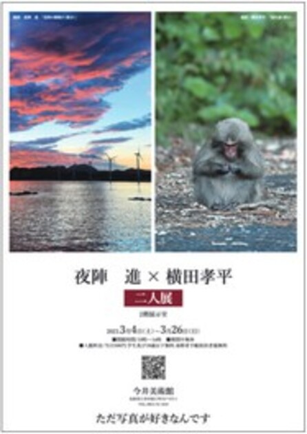 今回の展示は、江津市在住の夜陣進(やじんすすむ)と横田孝平(よこたこうへい)の二人展です。「ただただ写真が好きなんです」をサブタイトルとし、二人が好きな景色、好きな構図を発表。今井美術館の基本理念である「地域社会の発展に貢献したい」の想いをのせた「地域応援企画」です。