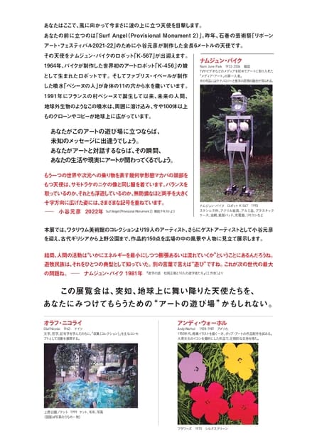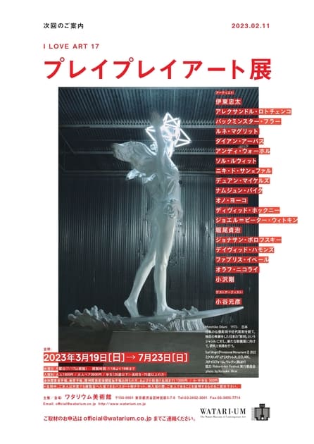 本展では、ワタリウム美術館のコレクションより19人のアーティスト、さらにゲストアーティストとして小谷元彦を迎え、古代ギリシアから上野公園まで、作品約150点を広場の中の風景や人物に見立て展示します。