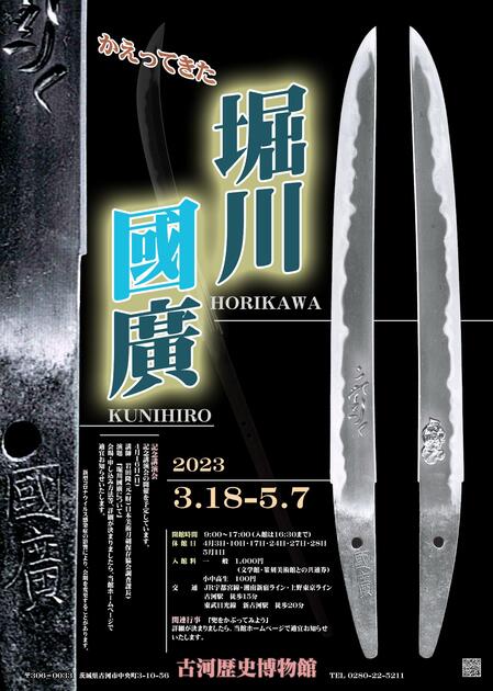 そして、令和5年3月、ふたたび当館では企画展「かえってきた堀川國廣」を開催し、あらためて國廣作品を通じてその魅力をさらに引き出したいと考えています。前回以来展示のなかった刀工堀川國廣の名品を新しい展示とともに紹介いたします。