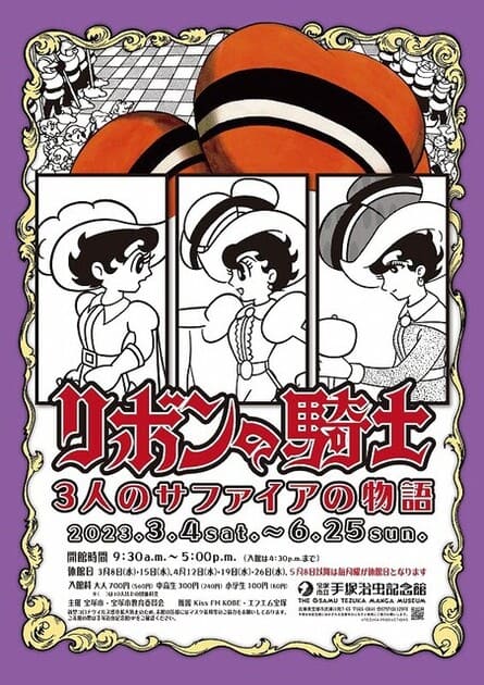 今年は最初のリボンの騎士が描かれてからちょうど70年になります。今回の企画展では、三つのリボンの騎士をそれぞれに紹介。少しずつ違った運命をたどったサファイアの物語を楽しんでください。