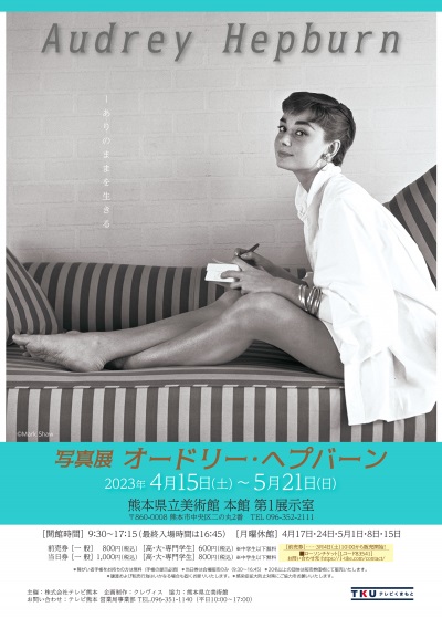 本展は、ファッション、映画、プライベートをテーマとして構成します。カリフォルニアのmptv社の全面的な協力を得て、同社が所属する約1,500点に及ぶオードリーのフォトコレクションより、一流のハリウッドフォトグラファーによる写真作品で展観します。​