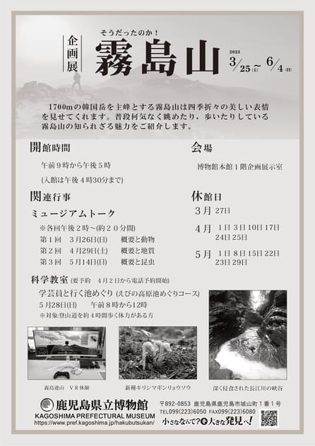 公式HP https://www.pref.kagoshima.jp/bc05/hakubutsukan/event/exhibition/2023_kirishimayama.html