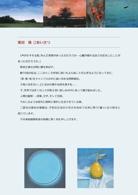 今展覧会は、コレクターである繁田隆氏のご協力により、所蔵する作品を一堂に公開し、初期の作品から抽象画、イーゼル画など約60作品を展示する。