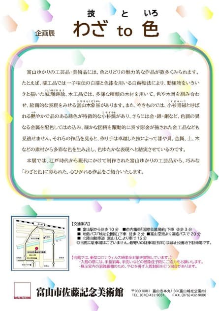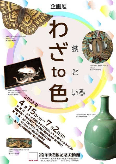 本展では、江戸時代から現代にかけて制作された富山ゆかりの工芸品から、巧みな「わざと色」に彩られた、心ひかれる作品をご紹介いたします。
