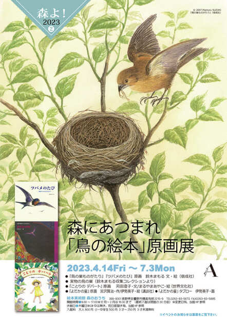 飛ぶ姿に様々な想像をかきたてられ、希望を託して描かれることの多い鳥の絵本の原画展。自然をみつめ、身の回りの環境や地球の明るい未来を考えてもらえる機会にしたいと、6月4日(日)には「鈴木まもる講演会」(4月14日参加受付開始)も予定。