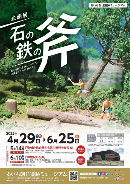 今回の企画展では、本館及び愛知県埋蔵文化財調査センター(弥富市)が所蔵する旧石器時代から古墳時代までの石斧・鉄斧に関する資料を展示し、先史時代の斧の役割、変遷について紹介します。