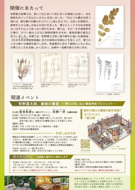 | 公式HP | https://www.makinoteien.jp/exhibition/%e3%80%90%e7%89%a7%e9%87%8e%e5%af%8c%e5%a4%aa%e9%83%8e%e7%94%9f%e8%aa%95160%e5%b9%b4%e8%a8%98%e5%bf%b5%e7%89%b9%e5%88%a5%e5%b1%95%e3%80%91%e5%b7%a1%e5%9b%9e%e5%b1%95-%e6%8b%9d%e5%95%93-%e7%89%a7/ |