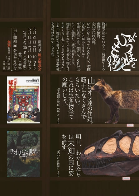絵本や昔話、文学小説、おとぎ話、私たちが良く知る物語には自然をモチーフにしたものが数多く登場します。本展示では、物語の縁になった動物や鉱物などの実物を、本やその背景を交えて紹介します。